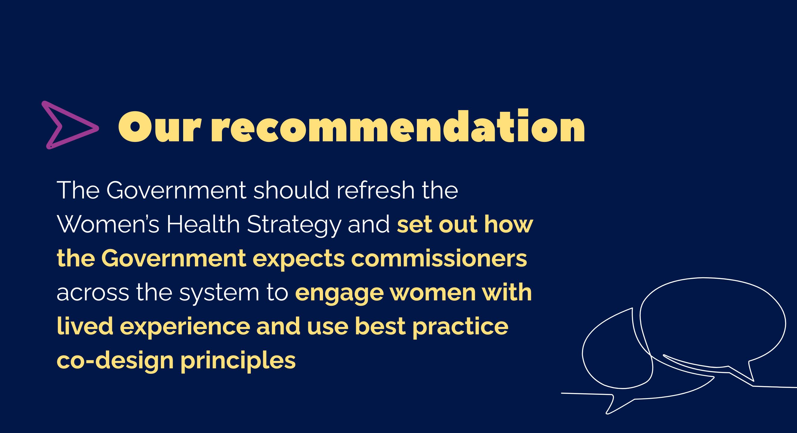 The Women’s Health Strategy should be refreshed in 2025 and the Government should commit to regularly reviewing the Strategy at least every three years throughout the 10-year period.