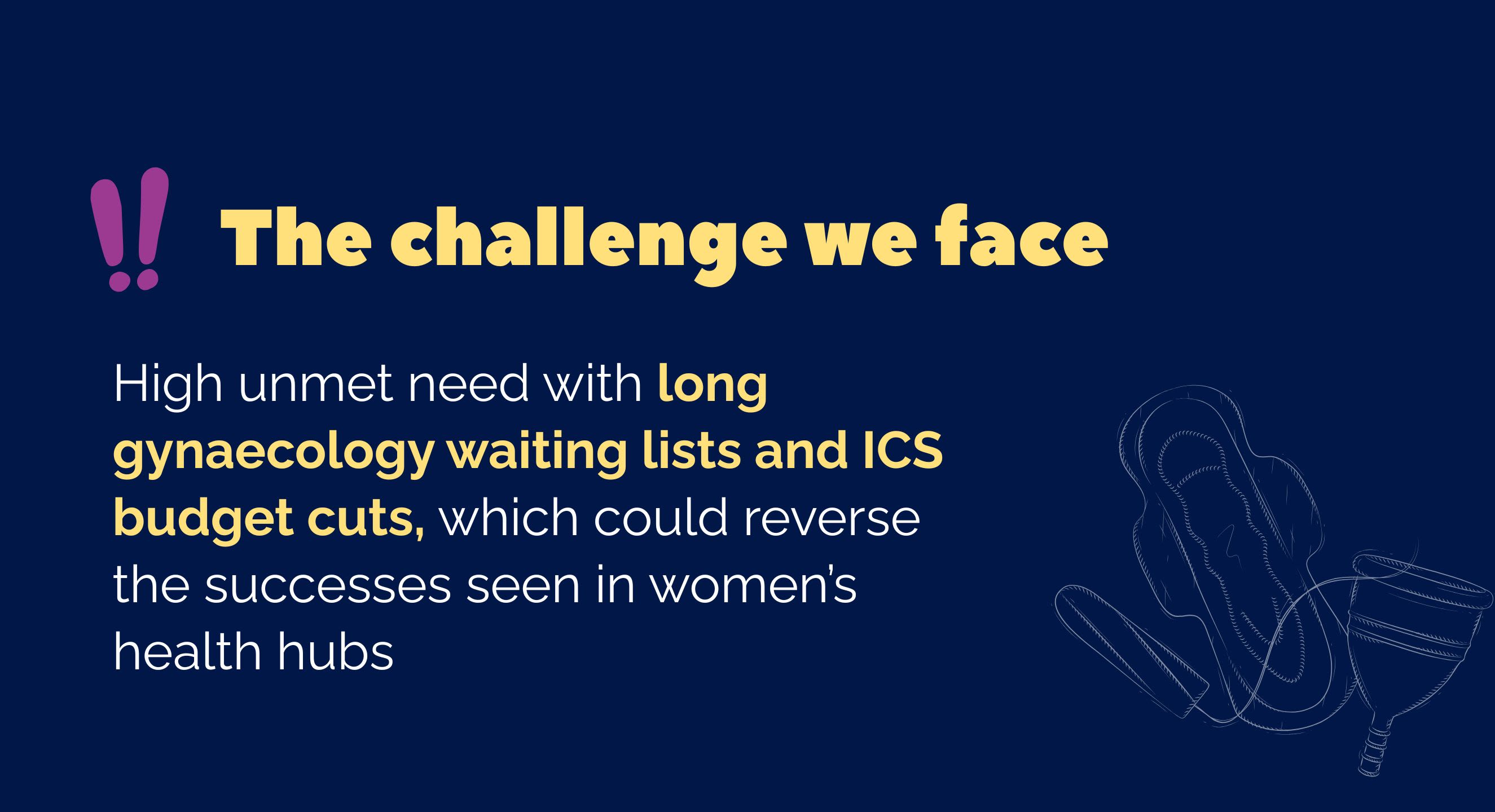 These predictable and common aspects of women’s healthcare, were top priorities for survey respondents in the original call for evidence, and many women are impacted by menstrual or gynaecological issues, with almost 580,000 women in England currently on a gynaecology waiting list.9 As well as having severe impacts on women’s lives, unmet need in this area comes with significant economic costs, estimated by NHS Confederation to be well into the billions every year.10