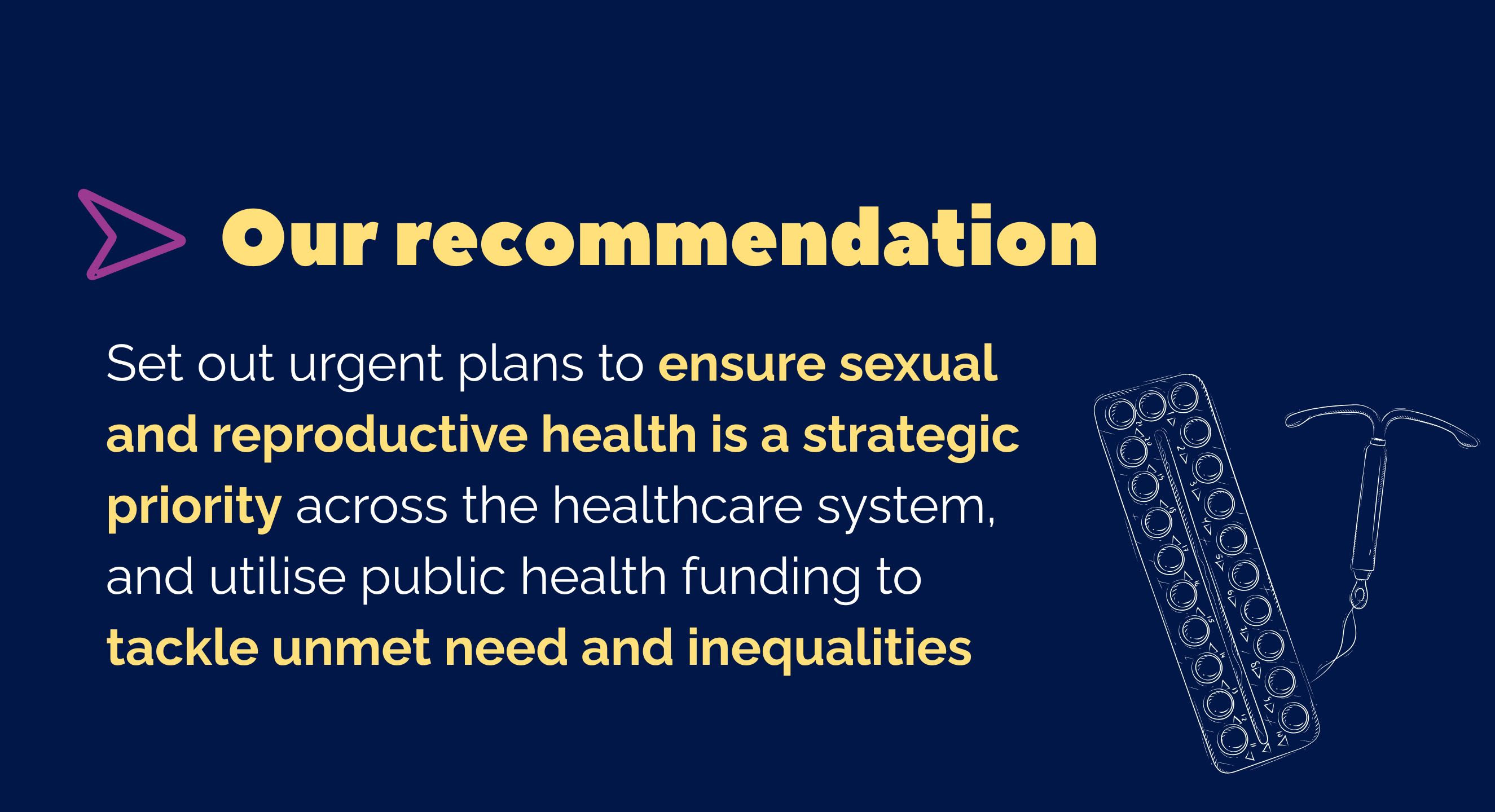 Urgent plans to ensure sexual and reproductive health is a strategic priority across the healthcare system, and how public health funding will be used to: