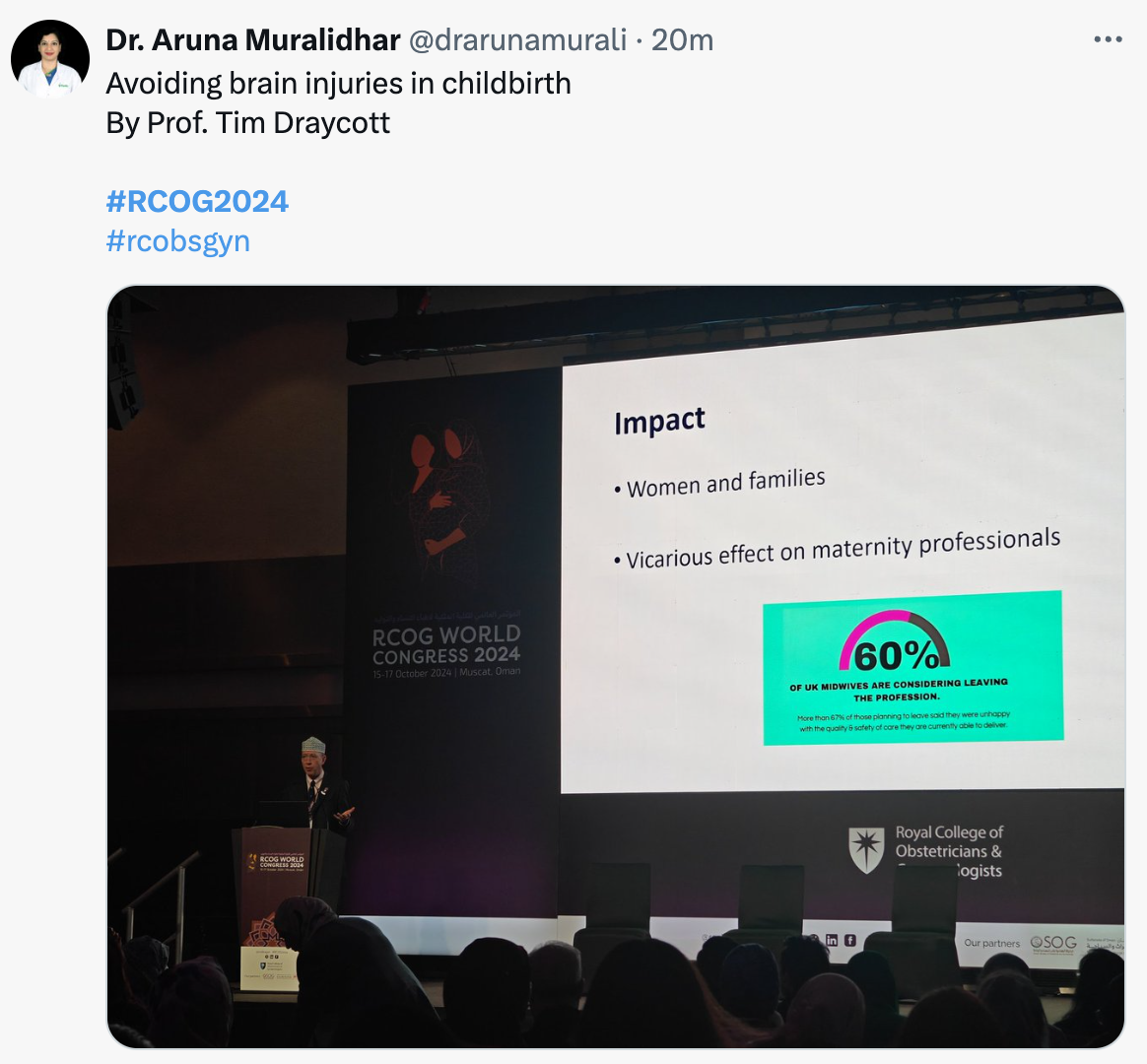 - Professor Asma Khalil, RCOG Vice President for Academia and Strategy, presenting on strategies to reduce stillbirth in twins versus singletons