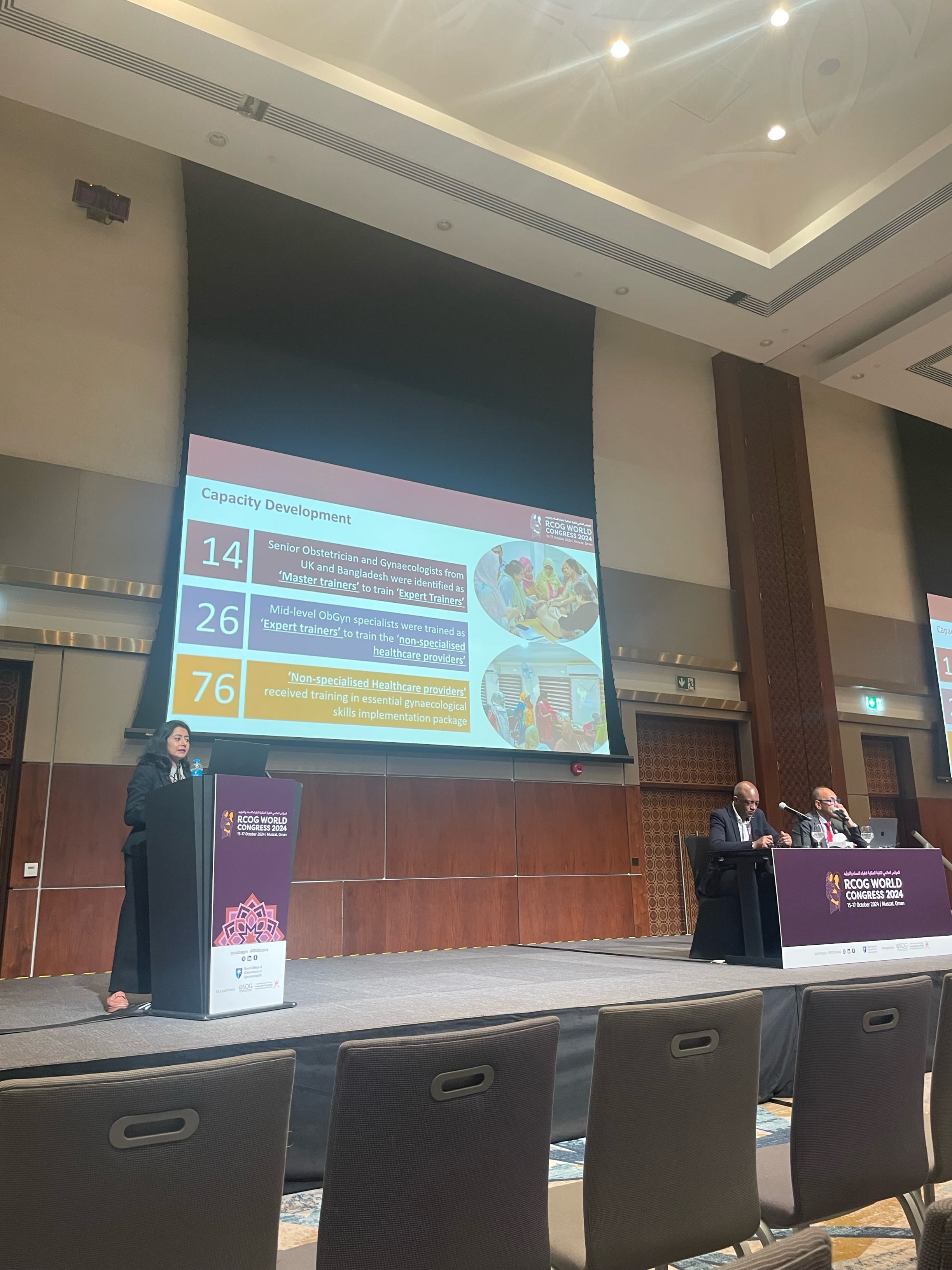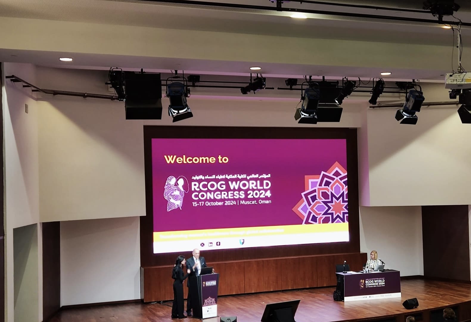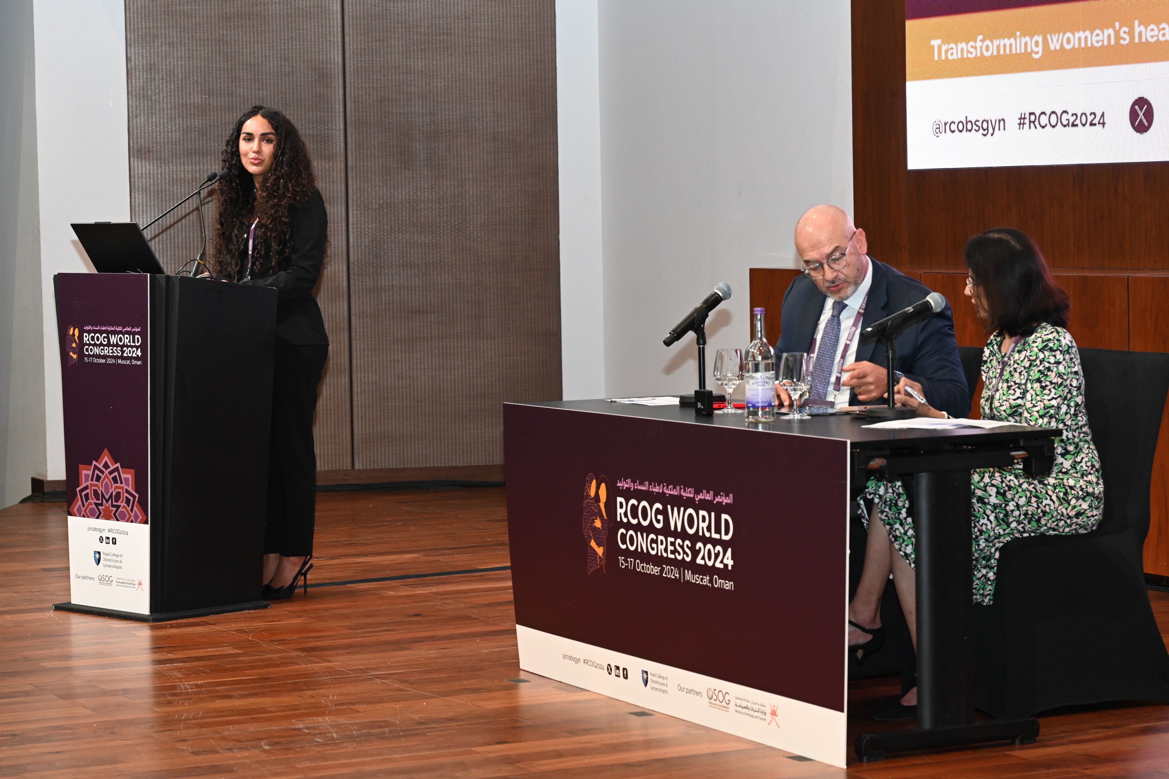 On day one of Congress, we started with OSOG President Dr Tamima Al Dughaishi and Senior and RCOG Global Health Vice President Day Professor Hassan Shehata and a keynote speech with RCOG President Ms Ranee Thakar.